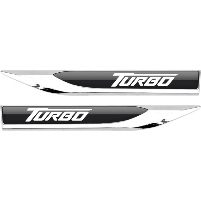 EMBLEMA AUTOMOTIVO APLIQUE LATERAL CROMADO - TURBO BRANCO (PAR) (FUNDO PRETO) - MA26010