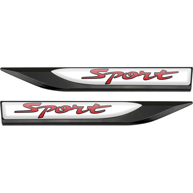 EMBLEMA AUTOMOTIVO APLIQUE LATERAL PRETO - SPORT VERMELHO (PAR) (FUNDO BRANCO) - MA26012