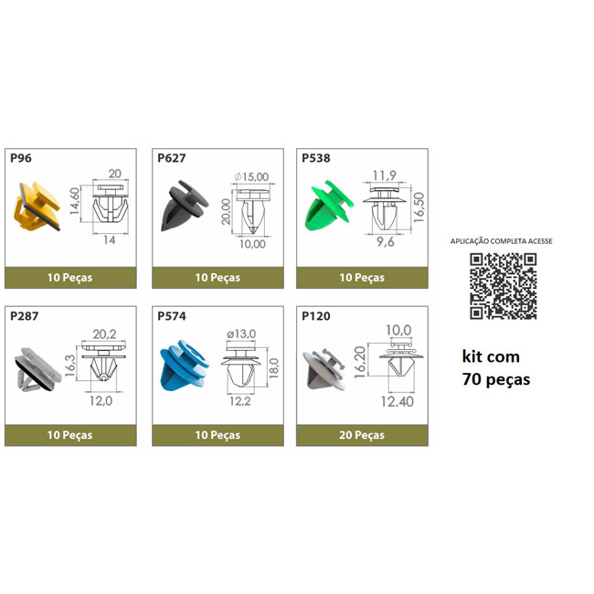 GRAMPO KIT - 70 PECAS- P/ MOLDURA PARALAMA FRISOS E SPOILER (PCP96-120-287-538-574-627) - KIA/HYUNDAI/ CITROEN /FIAT/ JEEP/ PEUGEOUT/ RENAULT / GM/ FORD - PCKMF6001