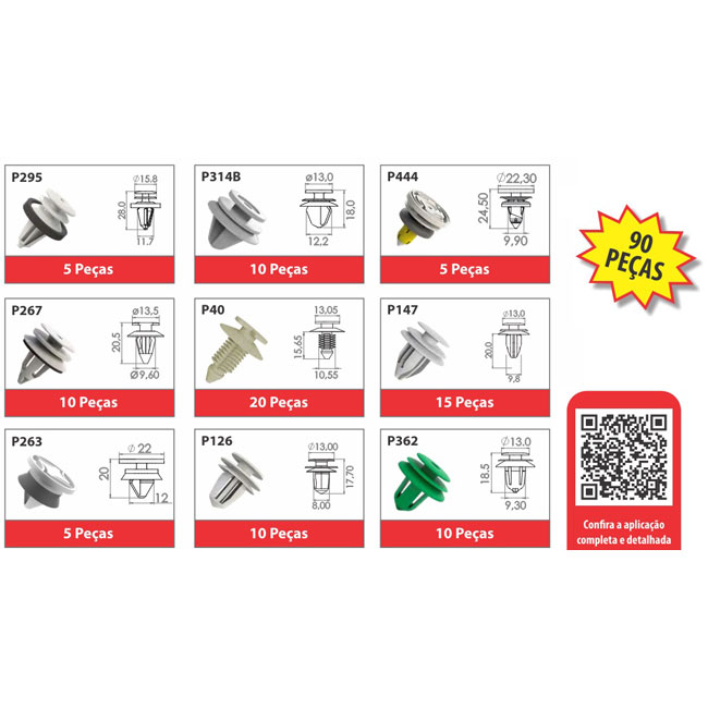 GRAMPO KIT 90 PECAS - FORRO PORTA - (PCP 295-314B-444-267-40-147-263-126-362) FORD/ HONDA/ KIA/ HYUNDAI/ NISSAN/ RENAULT/ CHERRY/ PEUGEOUT/ TOYOTA/ MINI/ CIT - PCKPT9002