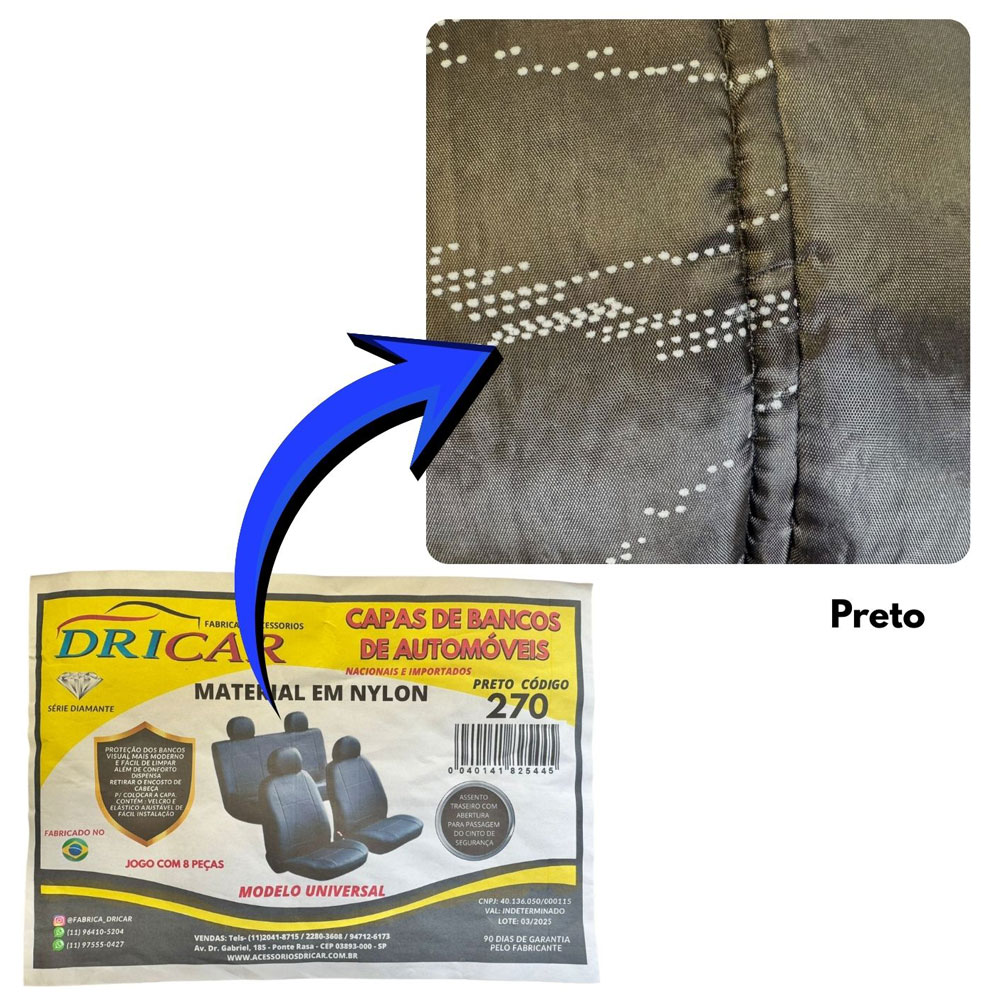 CAPA BANCO COR PRETO NYLON 4 APOIOS - DR270